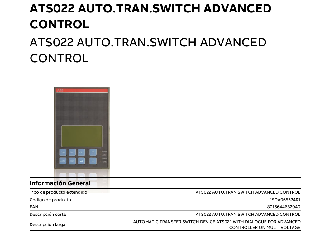 | Model | ABB 1SDA065524R1 (part of OTM series motorized changeover switches) |