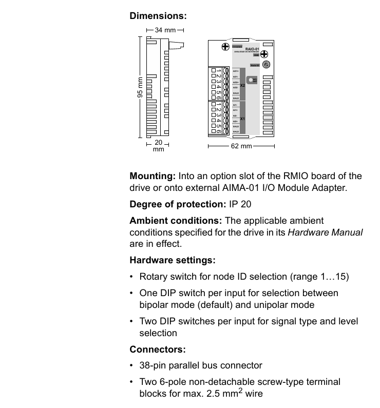 With an operating temperature range of -25°C to +60°C, the ABB RAIO-01 can withstand harsh industrial environments, ensuring continuous performance under challenging conditions.
