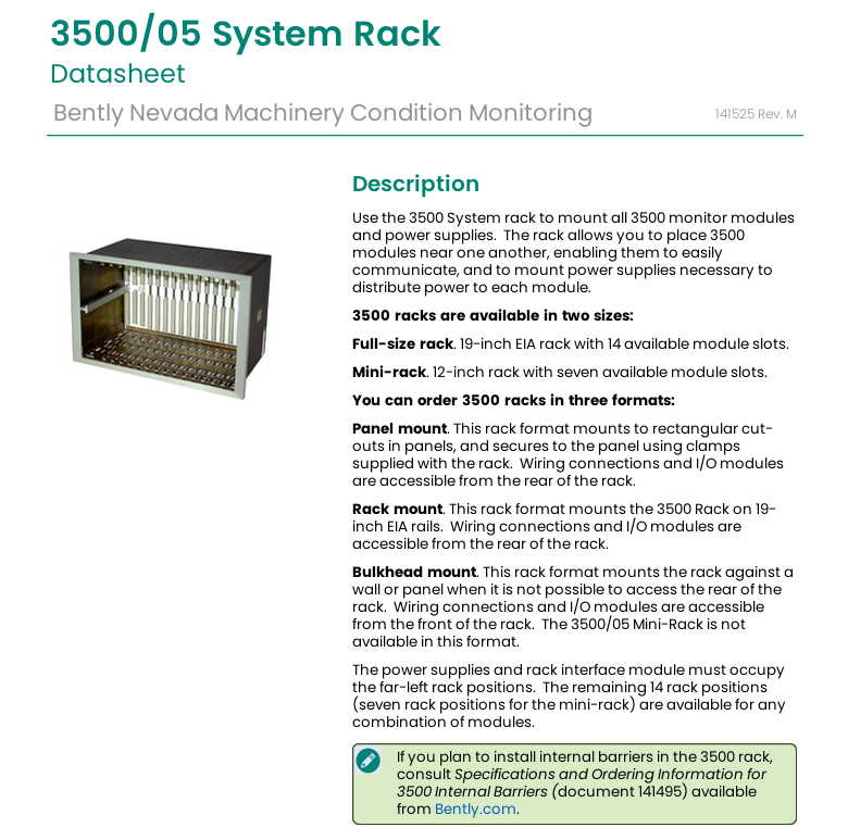 | Compatibility | All 3500 series modules (e.g., 3500/20 RIM, 3500/40M) |